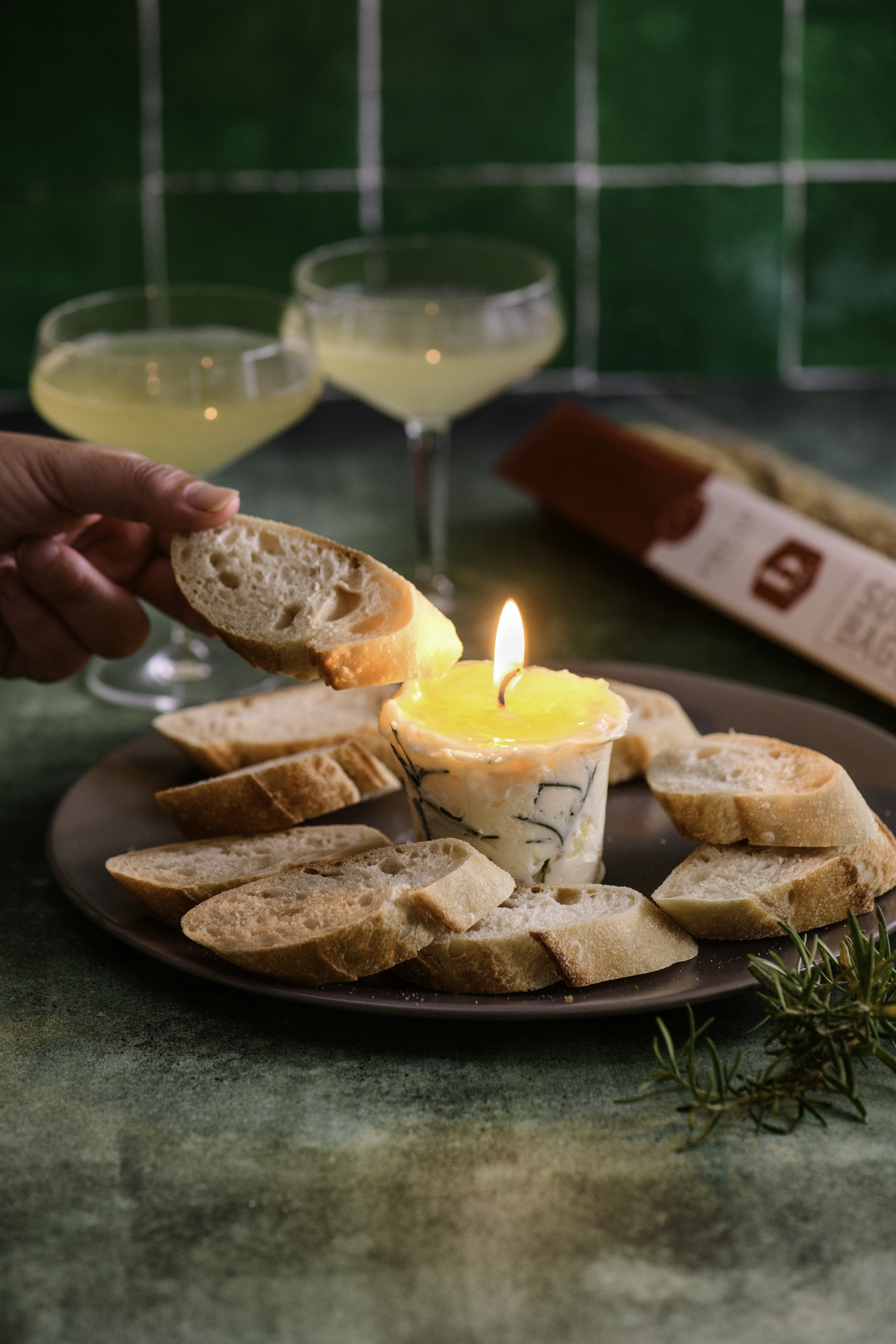 The butter candle trend continues to shine during the holidays, and it becomes even more special when paired with La Brea Bakery Sourdough Baguette. As the candle melts, it forms a warm, rosemary-infused pool of buttery richness that is perfect for dipping.